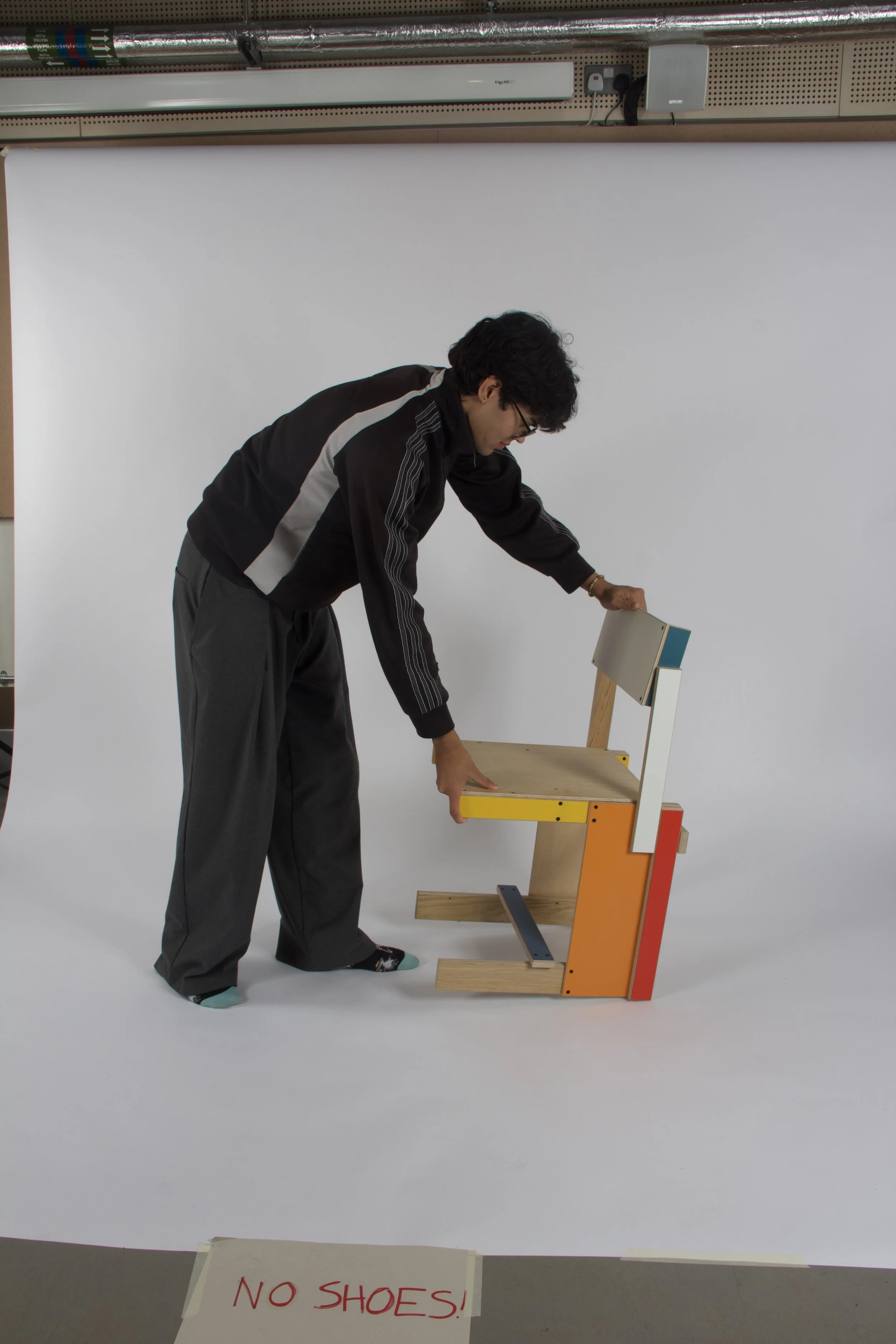 This ‘studio chair’ is designed under the influence of Sons of Beasley, a furniture company which uses plywood offcuts to create individual pieces that are full of character. My studio chair was designed around the sizes of plywood available, which meant that I had to think extra carefully about the construction and stability.